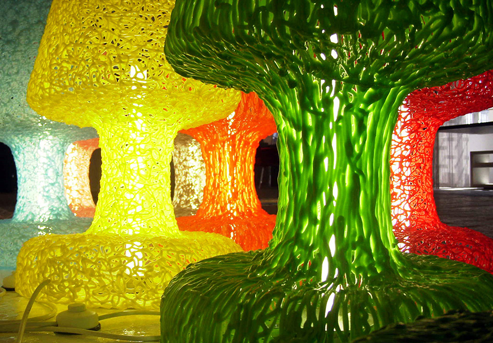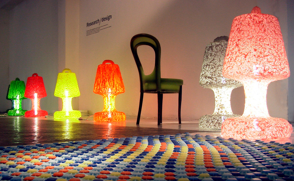 A series of 9 handmade unique lamps; decoration, construction and function are merged into one material.