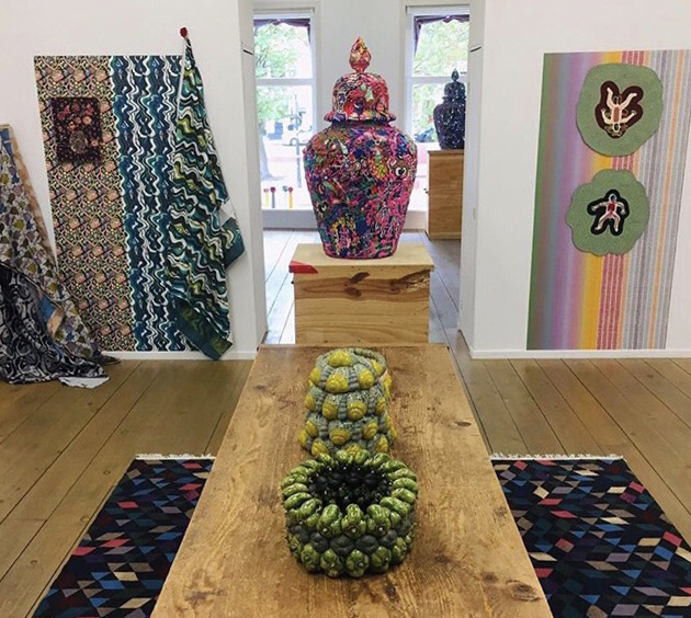 Manic Patterns brings together the work of artists and designers in an exhibition with the character of an installation. Both the works themselves and the display are visually dense: an interplay between tranquillity and commotion. Manic Patterns is not about defining or uniting disciplines but rather about how makers with varying preoccupations share a passion for pattern and structure. Repetition, order and the creation of freedom play an underlying role within a pattern. Nothing is more boring than more of the same. Many of the works feature the endless repetition of parts of the motif. It is here that the ‘manic’ of the title resides. Neither the makers nor the viewers can escape this obsessive repetition.