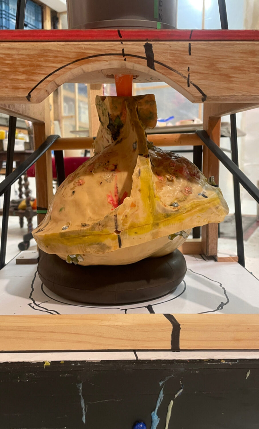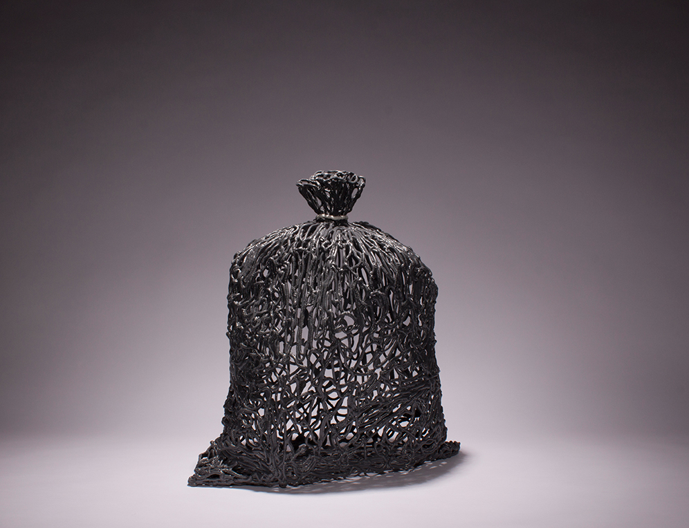 The resin artwork, with its thin, open structure in army green and black, symbolizes ownership and utility. It suggests the potential to contain something but leaves it open to interpretation. Is it rare, essential, wasteful, or something to discard? The artwork challenges us to contemplate these questions, prompting a reconsideration of our relationship with resources and responsibility